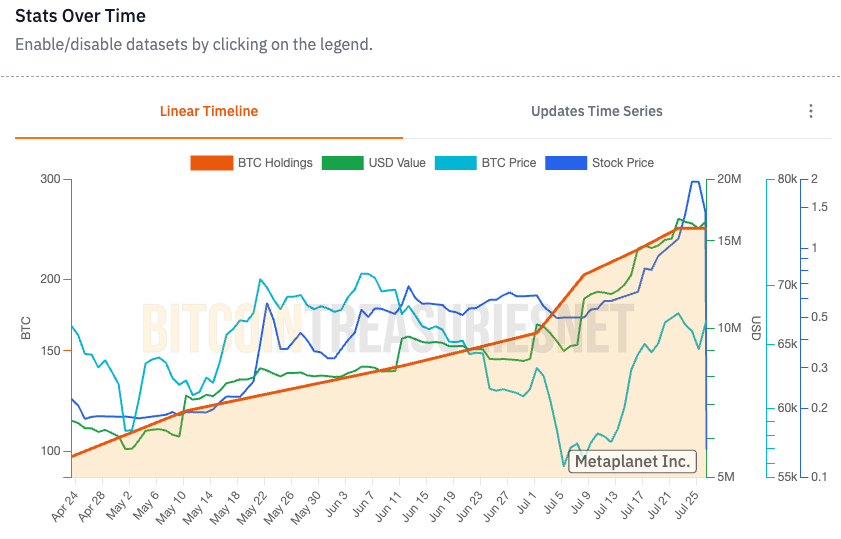 但這家日本投資公司最終意識到比特幣可以加強其資產負債表,同時減少其對快速貶值的日元的風險敞口:「我們意識到比特幣是頂級貨幣資產,是我們財庫應該擁有的。我們然后設定了目標,要在未來盡可能多地購買比特幣。」自從4月23日進行首次比特幣購買以來,Metaplanet的比特幣投資也略有下降,但公司的股價自那時以來飆升了980%。