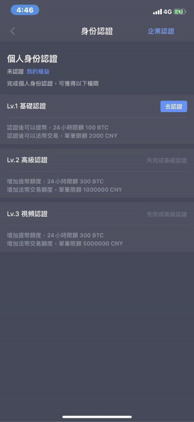 *認證到Lv.2 『身份認證』 方可提幣以及充幣。