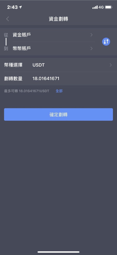 進入首頁點選資金劃轉,接著從資金帳戶將您的幣種轉至其他帳戶(幣幣、合約、杠桿、余幣寶等等)接著選擇要劃轉的數量即可開始交易。