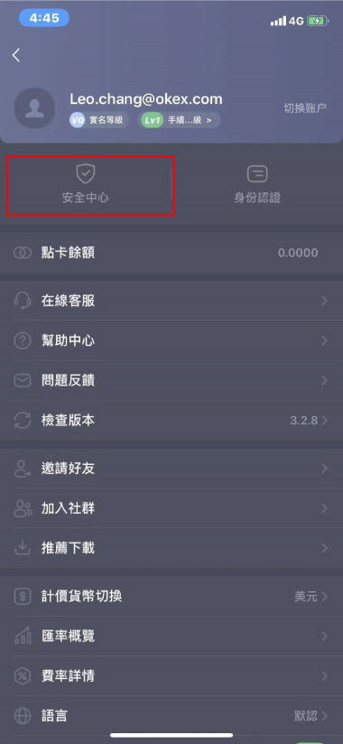 身份認證完成后,回到個人頁面點選安全中心。