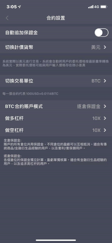 可對計價貨幣、交易單位等進行個人化設置。選擇帳戶模式、杠桿倍數等等。