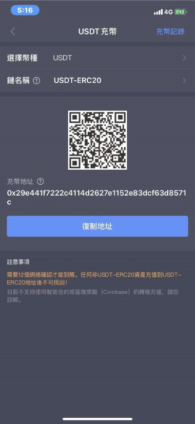 *注意:必須看好地址對應的幣種。例如USDT有三種公鏈,