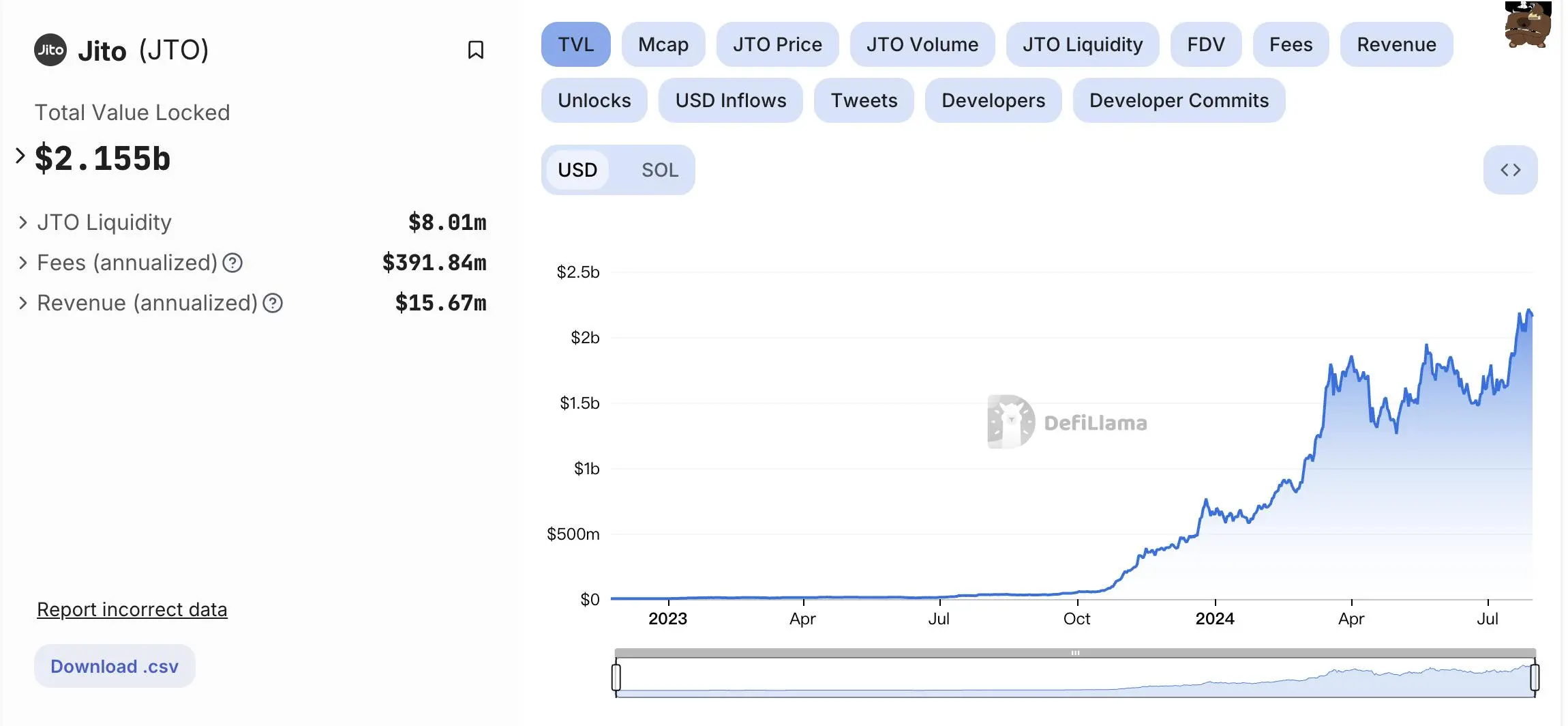 其中,Jito 的 LST 代幣 jitoSOL 市值高達 22 億美元,占整體的 46%,排名首位。官網(wǎng)顯示,jitoSOL 的 APR 達 7.68%,質押者數(shù)超 10.5 萬個,驗證者數(shù)為 218 個。