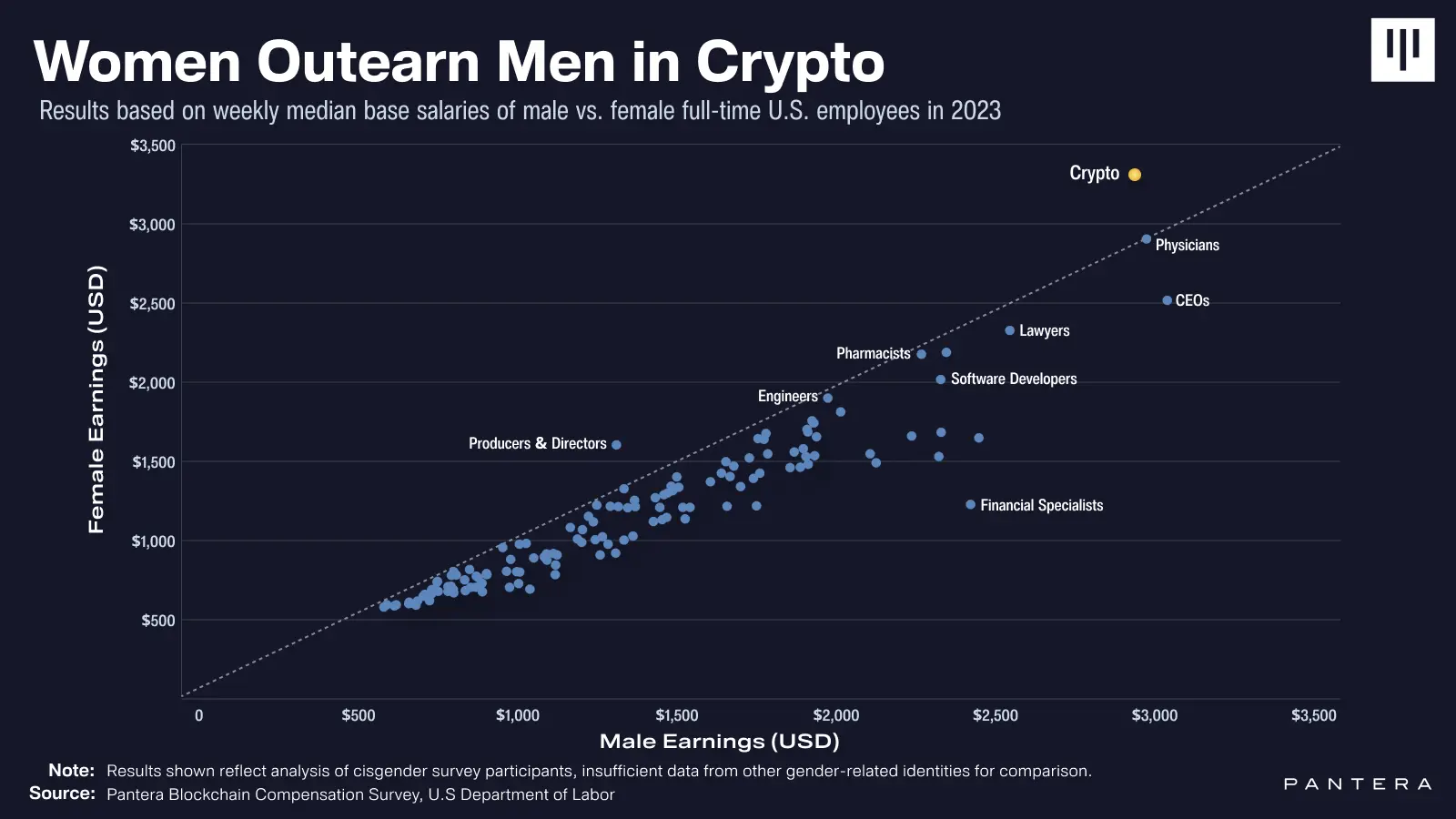 這種「反向」工資差距可能表明,與傳統領域相比,加密行業為女性提供了更好的機會。