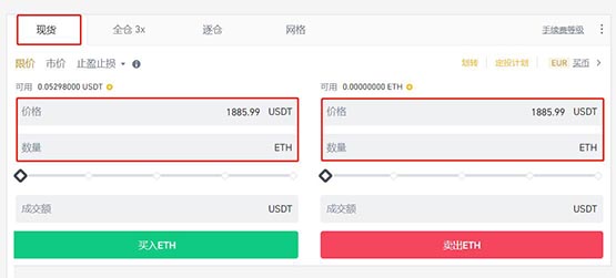 第5步:選擇【現貨】,輸入買入/賣出數量,點擊【買入ETH】/【賣出ETH】。