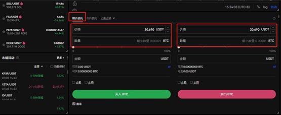 第4步:點擊BTC/USDT交易對,即可看到BTC實時行情。