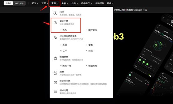 第3步:登錄進入首頁,點擊【交易】—【基礎交易】—【幣幣】,進入交易頁面。