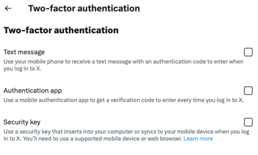 可以設置如下 2FA 來增強賬號的安全性,如短信驗證碼、身份驗證器和安全密鑰。
