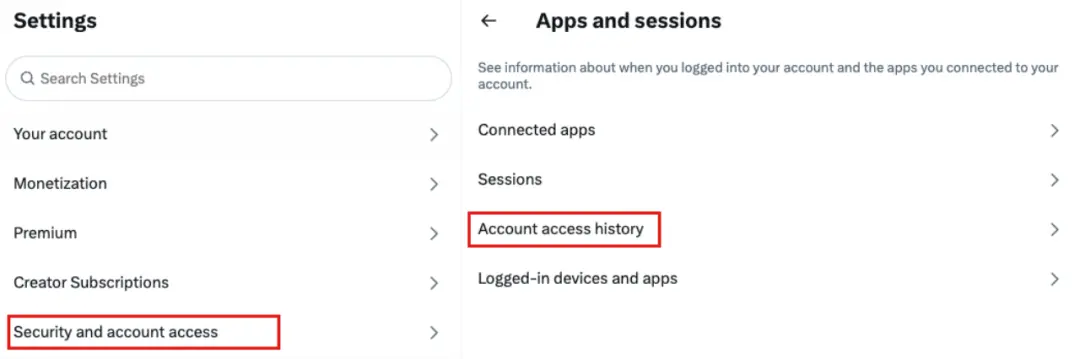 排查方法:Settings → Security and account access → Apps and sessions → Account access history