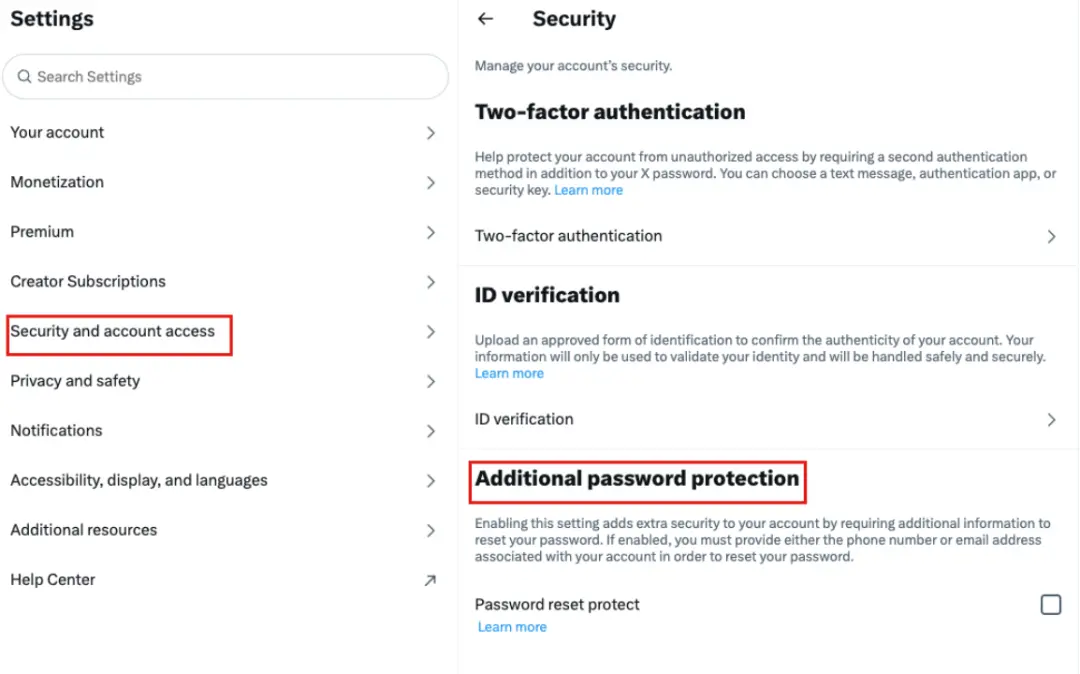 除了設置賬號密碼和 2FA 外,用戶還可以開啟額外的密碼保護來進一步增強X賬號安全性。
