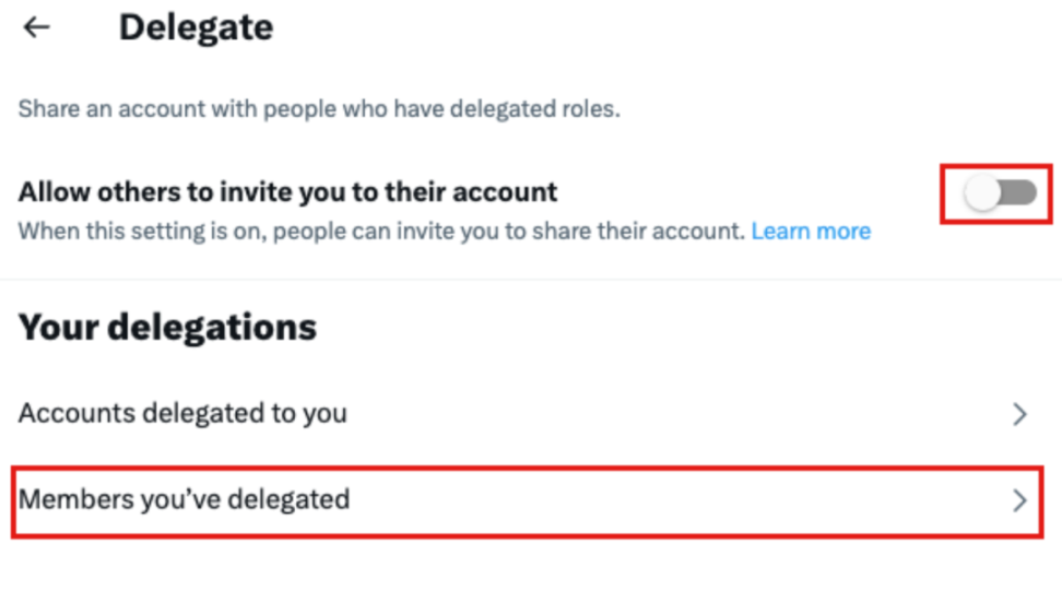 如果發現當前賬號開啟了允許邀請管理,那么需要進入「Members you’ve delegated」查看當前賬號共享給了哪些賬號,在不需要共享后應第一時間取消委派。