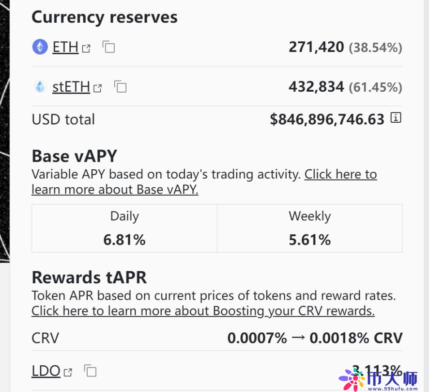 據 Lido 官方統計,持倉>100 stETH 地址當中約有 49 % 的 stETH 來源為 DEX 購買,或許因為 Smart Money 更傾向于在 stETH 折價時購買,并預計于上海升級后抹平折價時賣出套利。既然已經成功合并,提幣也是核心下一步將會部署的功能,那么 stETH 脫鉤的風險倒也沒有很大。