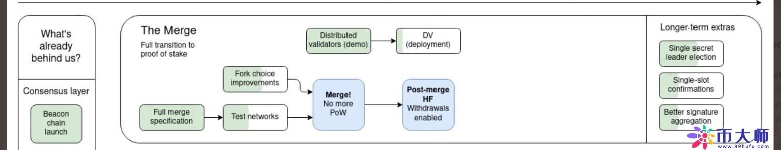 V 神 2021 年底發布的以太坊升級五大階段當中,The Merge 部分中間提到了 Distributed Validators Technology。在 POS 中,每當驗證者需要提案或證明新區塊時,使用驗證者密鑰對數據進行簽名,而這種情況大約每個 epoch( 6.4 m)發生一次,除了用戶自行運行驗證者客戶端以外都需要吧驗證者密鑰交給質押服務商。或許這是另外一個以太坊 staking ratio 仍然過低的原因,人們不愿意去相信任何一個第三方,尤其是在 2022 年眾多一線機構暴雷的情況下更加劇了這種想法,「Not your key, not your Coin.」