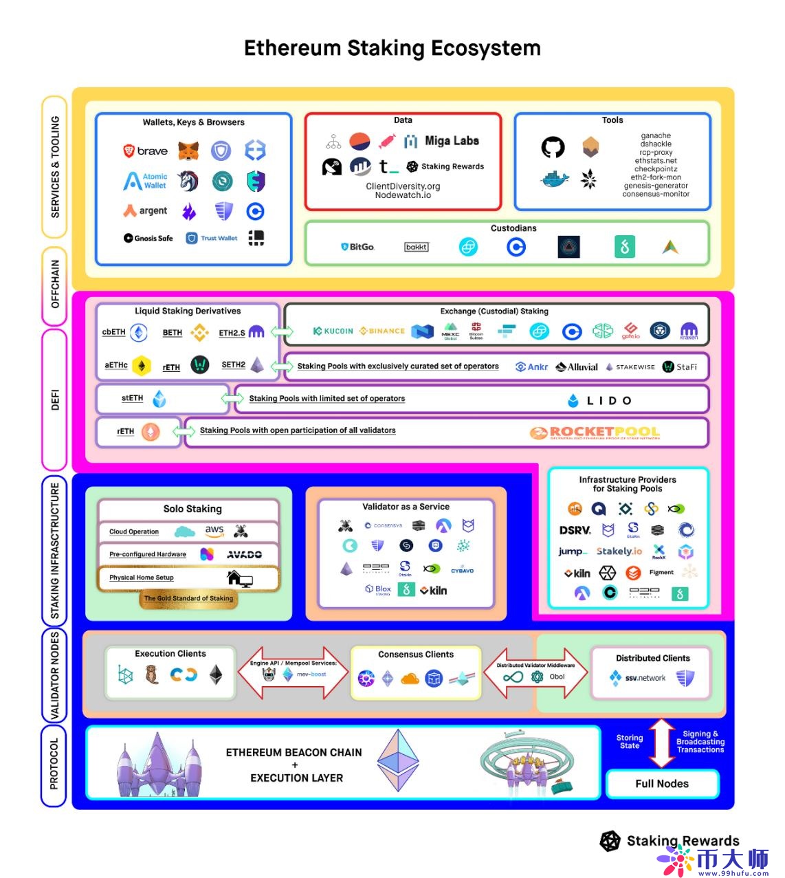 借用一張 Staking Rewards 做的很詳細的圖,看起來很復雜,但實際上真正需要關注的東西沒有那么多。