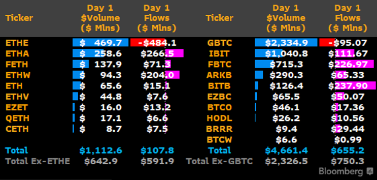 以太坊現(xiàn)貨ETF首日表現(xiàn)