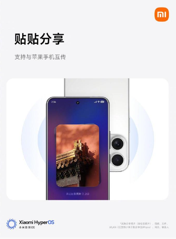 小米澎湃OS 3新增貼貼分享:照片、視頻無損高速傳輸 支持與蘋果互傳