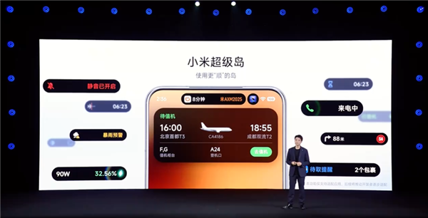 功能性方面,澎湃OS 3帶來了全新的“小米超級島”,支持重要通知、應用服務、設備狀態三類信息常駐前臺,可1次上島3個通知,支持下拉小窗查看、長按拖拽分享。