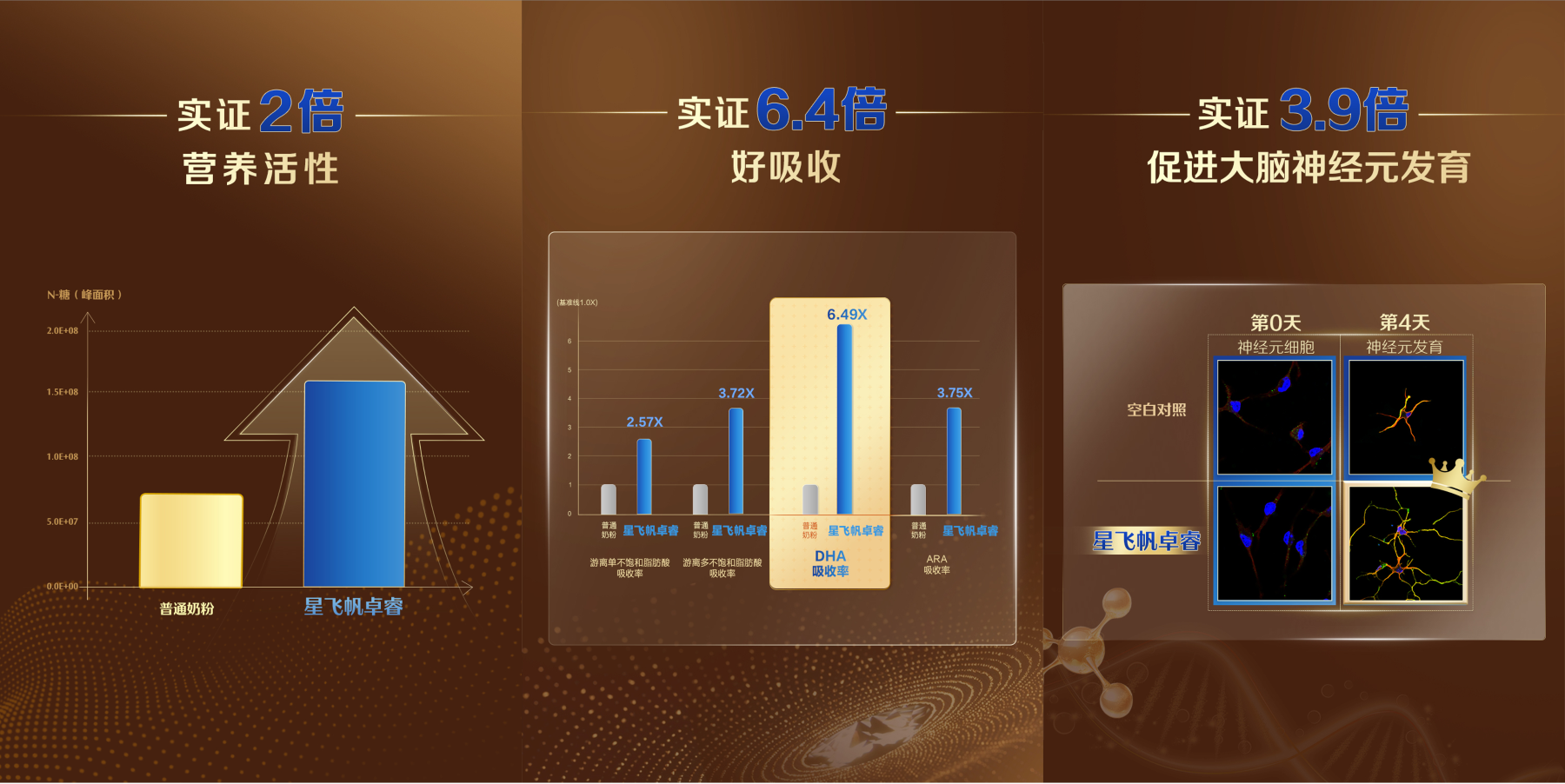 目前,飛鶴的科技投入已轉(zhuǎn)化為實實在在的產(chǎn)品優(yōu)勢。在近日由中國食品科學(xué)技術(shù)學(xué)會主辦的研討會上,飛鶴分享了“新一代鮮活營養(yǎng)”的研發(fā)與產(chǎn)業(yè)實踐成果。其明星產(chǎn)品星飛帆卓睿奶粉獲得多項科學(xué)實證支持,數(shù)據(jù)顯示其活性營養(yǎng)成分(N糖)達到普通奶粉的2倍,DHA吸收率提升至普通奶粉的6.4倍,關(guān)鍵營養(yǎng)素吸收效率顯著領(lǐng)先。