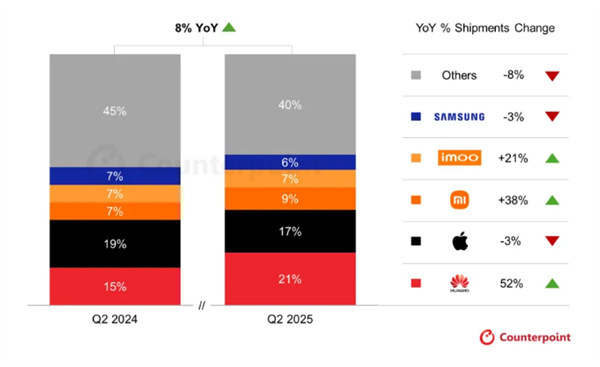 本站8月29日消息,據媒體報道,市場調查機構Counterpoint Research最新報告顯示,2025年第2季度全球智能手表出貨量同比增長8%,標志著市場在經歷連續五個季度的下滑后首次實現反彈。