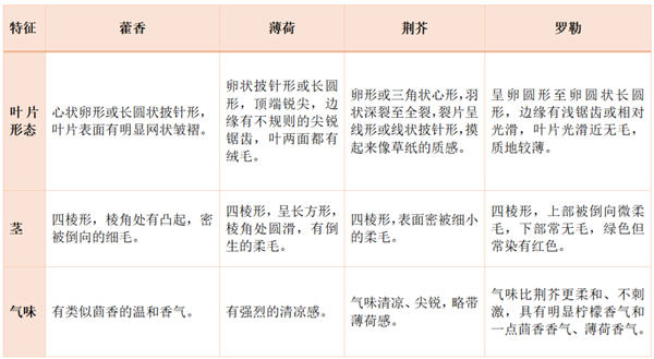 看到這里,你心動了嗎?其實像藿香這類的特色植物很多,例如薄荷(點擊閱讀相關舊文)、荊芥、羅勒(點擊閱讀相關舊文)等,在往期我們發布的這類文章中,我們發現留言區不少人把這幾種調料弄混了,今天我們特意整理了一張表格,希望能幫助大家辨別。
