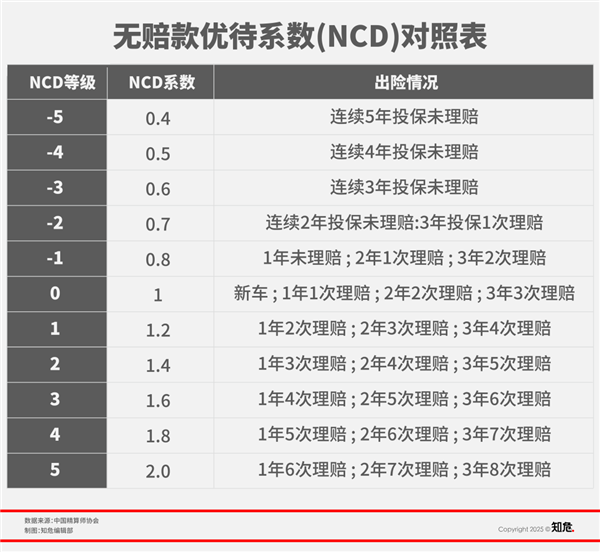 在這個公式中,無賠款優待系數( NCD 系數,no-claim discount )是商業險中為數不多與車主駕駛行為直接掛鉤的變量。