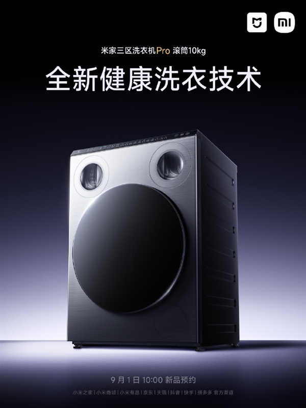 本站9月1日消息,今日,小米米家首款三區洗衣機官宣,產品名為米家三區洗衣機Pro 滾筒10kg ,目前已在小米之家、小米商城、小米有品等官方渠道開啟預約。