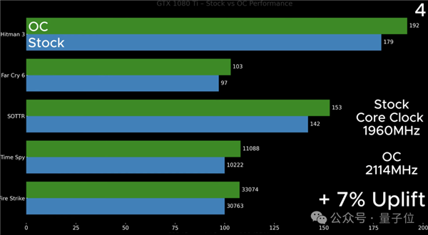 1080 Ti本就是一款高功耗GPU,且性能提升空間有限,因此提升幅度并不顯著。
