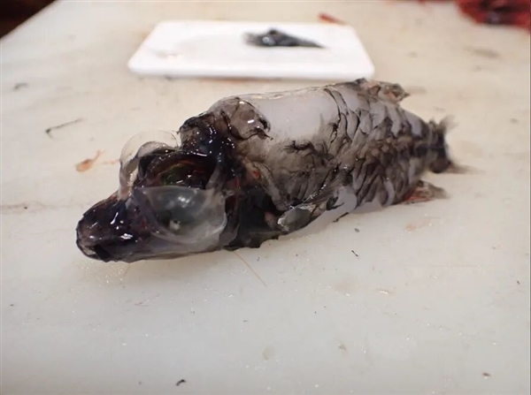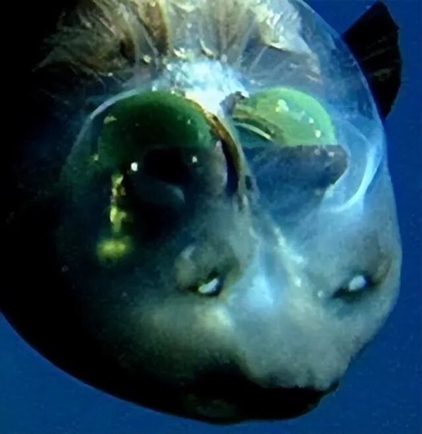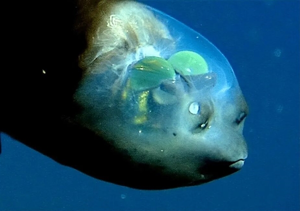 這種深海魚頭部竟是透明的 兩只綠眼睛在里面活動