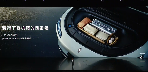 純電版提供124升容積的前備箱,支持車外雙擊開啟,而車內后排擁有超過1米的腿部空間,靠背最大支持32度調節,提高長途出行的舒適性。