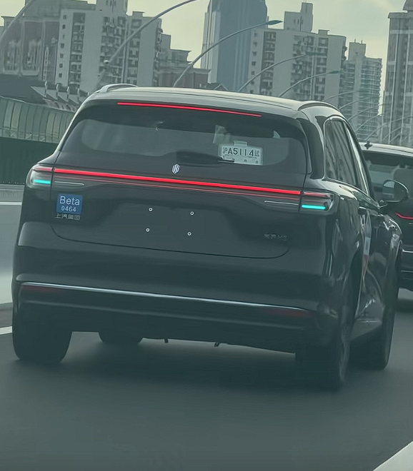 從照片看,這輛用于測試的尚界H5已經完全褪去了偽裝,開啟輔助駕駛走在高架上,尾部設有兩盞小藍燈,而剎車燈非常醒目