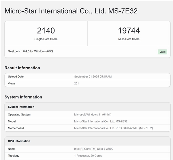 GeekBench 6里已經(jīng)出現(xiàn)了“酷睿Ultra 7 365K”,顯然就是現(xiàn)有酷睿Ultra 7 265K的升級(jí)版。
